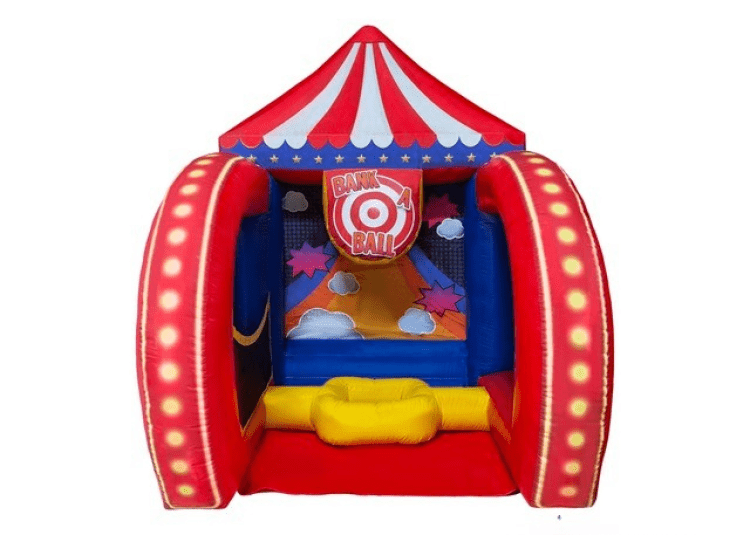 A classic carnival game that party guests will love — introducing the Bank a Ball Carnival Game. This inflatable interactive game is fun, compact, and great for all events and carnival-themed parties. The classic eye-catching red and white high peak tent style gives these Carnival Games a familiar yet unique feel.